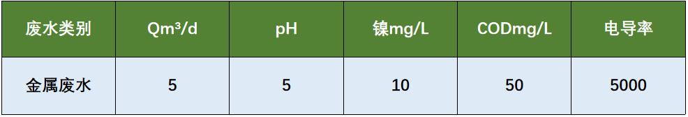 金属废水:流量为5m³/d,含镍,磷酸盐,硫酸根,硝酸根。